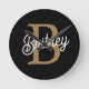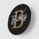 Horloge Ronde Monogramme moderne élégant Nom Black Gold Script