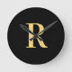 Horloge Ronde Monogramme moderne Noir Or