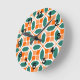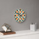 Cette horloge murale a un design art déco d'hexagones, pentagones, carrés, lignes diagonales qui ressemblent à une mosaïque.
