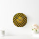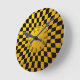 Horloge Ronde Motif carré à carreaux dorés et noirs / Design rét
