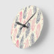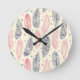 Horloge Ronde Motif De Plumes Ethniques Rose Et Violet