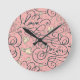 Horloge Ronde Motif romantique avec des coeurs et des oiseaux