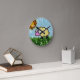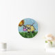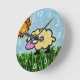 Petits moutons jaunes drôles avec un visage rose, se tenant dans un domaine des pissenlits, un jour lumineux et ensoleillé. Art numérique original de bande dessinée par Taylor Addams. Grande horloge pour la chambre à coucher d'un enfant. Brebis allant l'aimer !