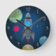 Ciel ocre nocturne de l'espace avec des planètes colorées et lumineuses et des étoiles blanches, avec un navire-fusée argenté volant à travers le ciel. Idéal pour une petite chambre pour les garçons pour le type qui aime l'espace et le voyage. Tous les Designs Copyright © 2012 www.CuteComfy.com
