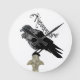 A jet black raven sits atop a Fleur-de-Lis church spire, with the word 'Nevermore. Inspirez par Edgar Allan Poe's The Raven.