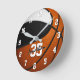 Horloge Ronde noir blanc équipe couleurs basketball personnalisé
