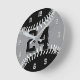 Choisissez vos propres couleurs ! Cette horloge murale de couleurs personnalisées pour la salle de sport d'un joueur de baseball (ou softball) présente l'image d'une simple balle de baseball noir & gris avec couture blanche - personnalisez avec le numéro de maillot de l'athlète - pour changer les couleurs des panneaux noir & gris du baseball et le numéro de maillot, cliquez sur le bouton "Modifier ce design" (ci-dessus) -_d_zynes
