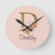 Horloge Ronde Nom personnalisé Blush Roses Roses Lettre D en feu