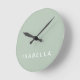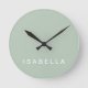 Horloge Ronde Nom personnalisé minimaliste moderne Sage vert