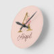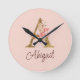 Horloge Ronde Nom personnalisé Or Feuille Rose Blush Lettre A