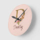 Horloge Ronde Nom personnalisé Or Foil Blush Roses roses lettre