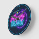 Horloge Ronde NOM Personnalisé Retro Faux Neon Happy Hour Bar