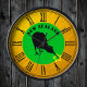 Horloge murale : silhouette de Nouvelle-Zélande et d'oiseau Kiwi avec design de style doré - style rétro.