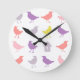 Horloge Ronde Oiseaux pastel rose et violet avec Birdhouse