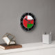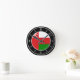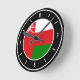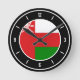 Oman Drapeau Elégante horloge ronde avec le drapeau d'Oman positionné au milieu et de beaux nombres d'horloge blanc sur le bord de l'horloge. Un arrière - plan noir élégant aux éléments blancs ovale finalise le design en mettant l'accent sur l'élégance. Une belle combinaison de noir et blanc avec l'intégration habile des couleurs du drapeau national font de cette horloge le cadeau parfait et la grande pièce de spectacle sur le mur. © 2022 PaysDuMonde