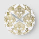 Horloge Ronde Or Glamour & Blanc Damassé Moderne Personnalisé
