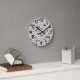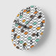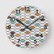 Cette horloge murale a un design rétro des années 70 des ovales en blanc, marron, bleu, et deux tons d'orange.