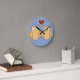 A cute design of two owls standing together with a red love heart between them on a sky blue background. Cute and quirky cartoon design inspire by love and friendship. Perfect for a kid's room clock or children's room décor.