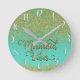 Horloge Ronde Paillettes dorées en cascade Turquoise Aqua Vibrat
