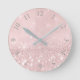 Horloge Ronde Parties scintillant gris argenté minimal rose rose