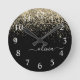 Horloge Ronde Parties scintillant Noir Or Script Monogramme Nom