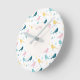 Horloge Ronde Pastel Scandi Birds Pattern Custom Name Nursery