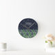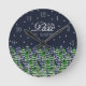 A forest of christmas trees and a starry night sky are the backdrop for the text, "Peace On Earth", on this holiday themed numbered wall clock.
