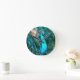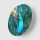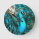 Horloge Ronde Peacock Bleu Vibrant Avec Queue Fissée