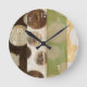 Horloge Ronde Peinture en panneau de bois de tonalité Terre avec