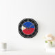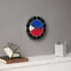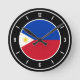Philippines Flag Elegant Round Clock with the Philippines flag positioned in the middle and lovely white clock numbers on the clock edge. Delightful black background with the white oval elements finalize the design putting emphasis on the elegance. Beautiful combination of black and white with the skillful integration of the national flag colors make this clock the perfect gift and the great show piece on the wall. © 2022 CountriesOfTheWorld