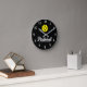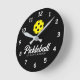 Pickleball lover wall clock with funny quota. Custom round time clock with yellow ball logo and script text. Fun Birthday party vend idea for fan, player, sport coach, papa, maman, wife, husband, adolescents, etc. Change ball logo and background into any color. Personalize with your own funny quoor club name. Available in different sizes. Great for office, kitchen, club, menaçant, living room, restaurant, cafe and other places.