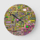 Horloge Ronde Pink and Yellow Geometric shapes pop art punk