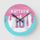 Horloge Ronde Pink & Blue Baseball Drip