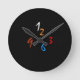 Original fun design, background en noir, radio numéro en rouge, orange, bleu et blanc. Very simplistic art decore clock. Pour l'individu en toi.