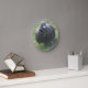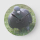 Cette horloge impressionnante comporte une photographie d'un pigeon sauvage rentré mon jardin arrière. L'oiseau picotait environ dans l'herbe recherchant la graine qui avait été frappée outre d'un conducteur d'oiseau. L'irisation des plumes est clairement évidente dans la photo.