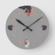 Une horloge frivole pour la volaille évente avec quatre portraits de poulet - deux têtes noires assorties de poules à gauche et à droite, une plus grande poule noire regardant vers le bas à partir du dessus, et une poule blanche du Sussex le fond. Les heures intermédiaires sont de petits oeufs. Un peu d'humour pour la cuisine :) cette version est avec un arrière - plan gris-foncé qui peut être changé utilisant le bouton de personnaliser et éditer.