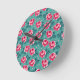 Horloge Ronde Pretty Pink Roses and Polka Dot Pattern on Teal