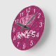 Belle horloge murale scintillante rose vif fausse / faux paillettes pour Princesse. Horloge funky, tendance, à la mode, féminine avec des chiffres blancs, un fond à motif d'effet de scintillement de paillettes roses classe et glamour, un design de texte Princesse rose et blanc avec une couronne / un diadème et un cœur et un effet 3D, et une illustration d'art antique vintage d'une couronne rose. Un cadeau parfait, chic, élégant et stylé pour la Princesse de votre vie - les femmes, les adolescentes et les enfants / les enfants adoreront ce cadeau mignon, adorable et féminin. Si vous avez besoin d'aide pour personnaliser votre produit, veuillez me contacter via ma boutique et je serai ravi de vous aider. REMARQUE : Tous les produits sur Zazzle ont des images imprimées à plat.