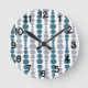 Cette toute horloge a un design moderne du milieu du siècle de rectangles arrondis turquoises et gris de taille croissante et décroissante qui tournent verticalement sur un champ de blanc.