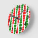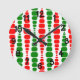 Cette horloge murale de Noël a un design moderne du milieu du siècle de rectangles ronds rouges et verts dans la taille croissante et décroissante courant verticalement sur un champ de blanc.