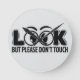 Un design ludique mais ferme qui vous raconte tout d'un seul coup d'oeil. Cette oeuvre d'art en noir et blanc audacieuse comporte le mot "LOOK" au-dessus d'une paire d'yeux de dessin animé expressifs qui attirent instantanément l'attention. Avec le message doux mais clair "MAIS S’IL VOUS PLAÎT NE TOUCHEZ PAS" en dessous, ce design est parfait pour tous ceux qui aiment un mélange d’humour, de limites et de flair artistique. Qu’il soit imprimé sur une affiche, une chemise ou un autocollant, il est sûr de faire sourire les gens et de réfléchir à deux fois.