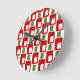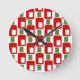 Cette horloge est recouverte de rectangles rétro rouges et verts.