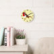 This robin design wall clock is a timekeeping device designed to hang on a wall, serving as both a functional tool and a decorative focal point for a room. Made from acrylic and features a pre-installed backside hanging slot for easy hanging and a non-ticking design. You can customise this wall clock with any text of your choice. Should you require any help with customising then contact us through the link on this page. Robin bird design wall clock