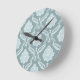 Horloge Ronde Rococo Damask Pattern Duck Egg Blue+Teal