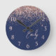 Parties scintillant étincelante rose bleu marine et Rose or Blush brossée Script Monogramme Nom Horloge. Cela rend le cadeau parfait pour 16 ans, mariage, douche nuptiale, anniversaire, baby shower ou bachelorette pour quelqu'un qui aime le luxe glam et les styles chic.