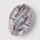 Horloge Ronde Rose Gold Rose Foncé Feuilles de Palmier Tropical