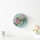 Horloge Ronde Roses Chic Rose Shabby Sur Bois Bleu