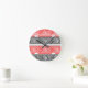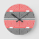 Horloge Ronde Rouge Blanc noir Clé grecque Fret Motif Design