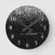 Black and Silver Sparkle Glitter Brushed Script Monogram Clock. This makes the perfect sweet 16 birthday, wedding, bridal shower, anniversary, baby shower or bachelorette party gift for someone that loves glam luxury and chic styles.