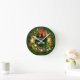 Décorez votre maison en cette période de vacances avec cette horloge murale classe qui comporte une magnifique couronne de Noël avec des cônes de pin sacré, des ornements luxueux, des cloches dorées, des rubans de soie, des arcs rouges et des poinsettias. Vous pouvez également le customiser avec votre propre libellé comme cadeau pour quelqu'un de spécial.